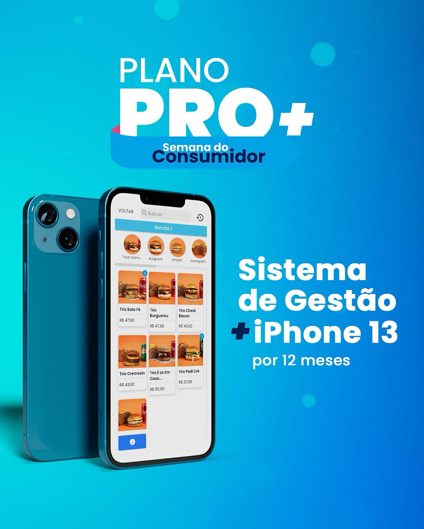 Além de garantir todas as funcionalidades da nossa Gestão Suave para o PDV, Delivery Próprio, Controle de Estoque, Fiscal Completo, Sistema KDS, Robô de WhatsApp, Relatórios Diários e muito mais, o plano ainda vem com uma super novidade esse ano: um iPhone 13 novinho pra você aproveitar as nossas funcionalidades ainda mais. 📲💙
